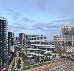 Дом оборудован всеми необходимыми удобствами: подземная парковка, пассажирский и два грузовых лифта, а также пандус для удобного доступа. Инфраструктура вокруг дома развита: рядом есть школы, детские сады и магазины, что делает этот район идеальным для семейной жизни.
