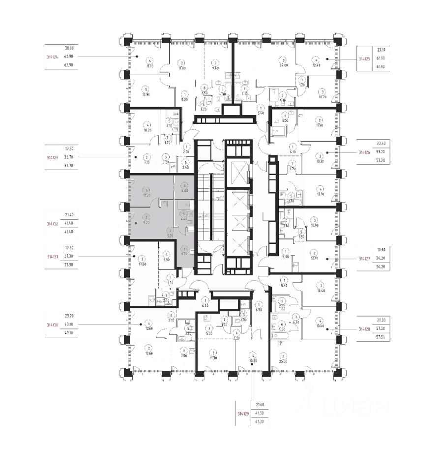 В ЖК SET продается 1-комнатная квартира площадью 41.40 м², расположенная в корпусе 3, на 14 этаже 45 этажного дома.