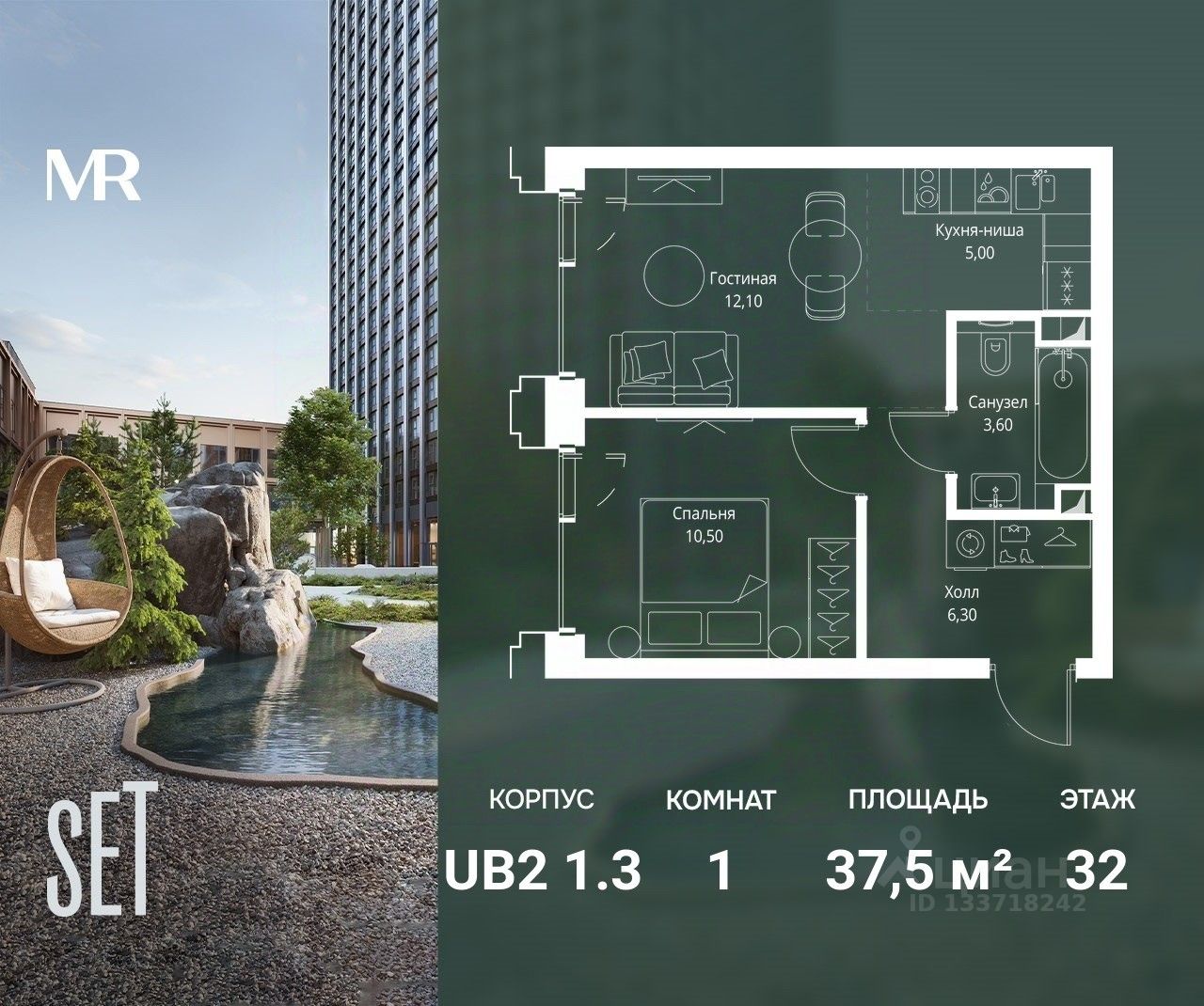В ЖК SET продается 1-к квартира площадью 37.50 м², расположенная в корпусе 3, на 32 этаже 45 этажного дома.