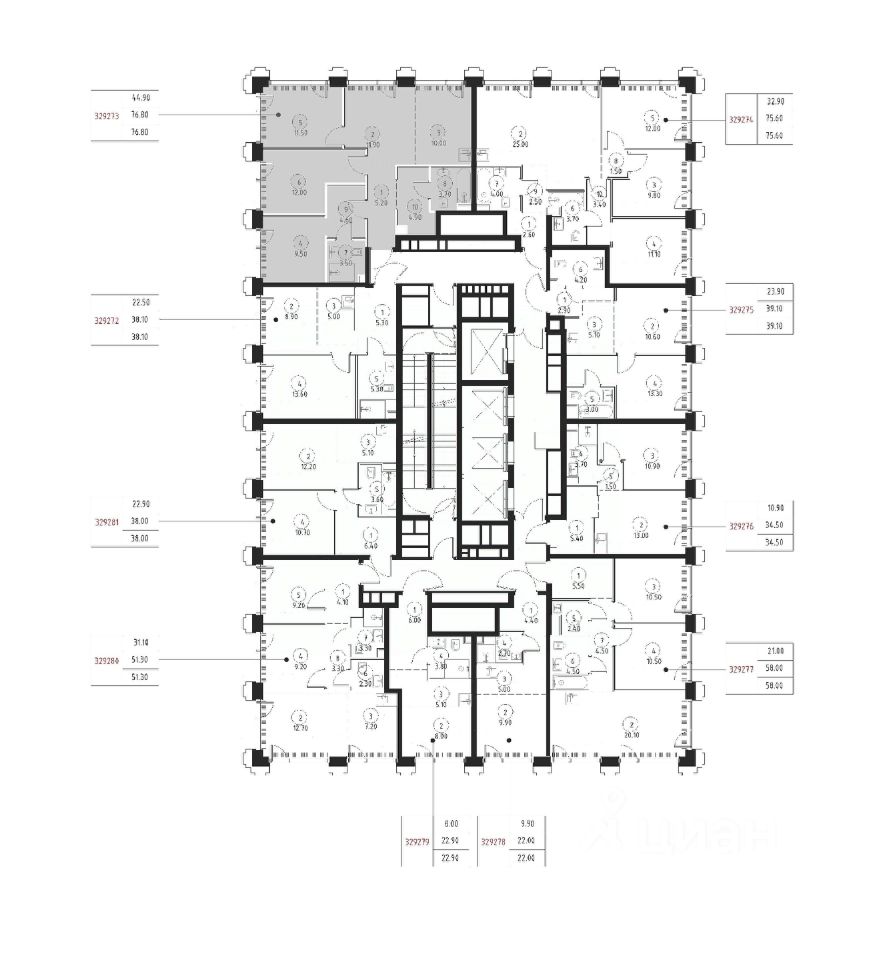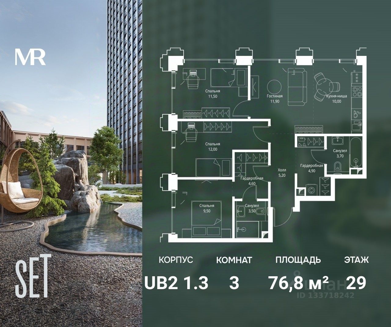 В ЖК SET продается 3-комнатная квартира площадью 76.80 м², расположенная в корпусе 3, на 29 этаже 45 этажного дома.
