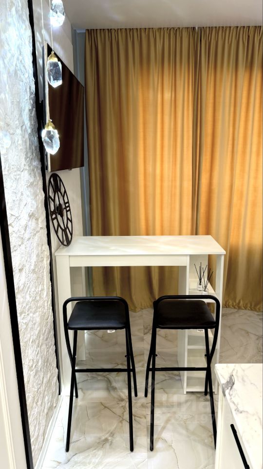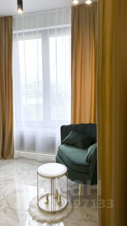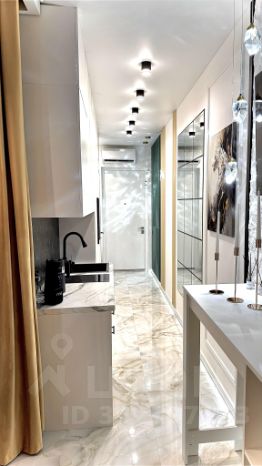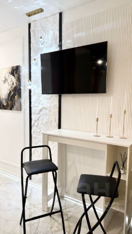 Студия с дизайнерским ремонтом в современном доме бизнес-класса полностью меблирована и оснащена техникой — можно сразу заехать и жить.