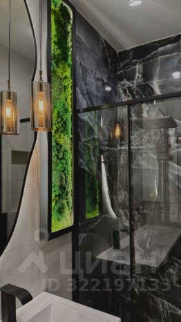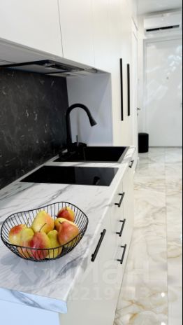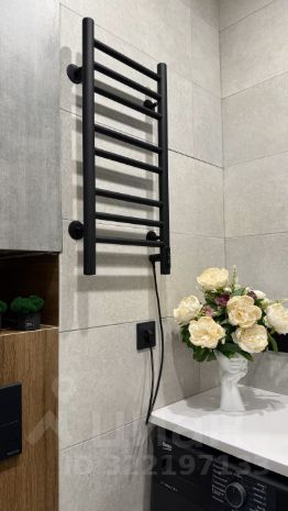 Вся мебель выполнена на заказ. В квартире установлены: индукционная варочная панель, встроенная вытяжка, встроенный холодильник, стиральная машина. Санузел оборудован качественной сантехникой.