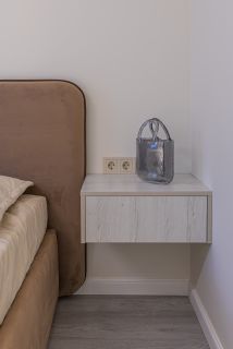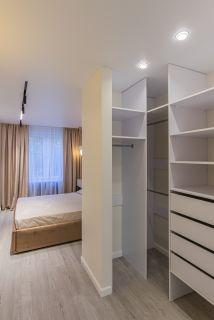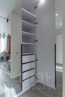 Продуманная планировка для комфортной жизни: просторная кухня-гостиная с раздвижной стеклянной перегородкой служит сердцем квартиры. Предусмотрены две изолированные спальни: мастер-спальня с собственной гардеробной комнатой уже полностью меблирована. Вторая спальня оставлена свободной под ваши цели, будь то детская или кабинет. В прихожей спроектирован вместительный четырехметровый шкаф, который полностью решает все вопросы хранения.