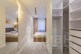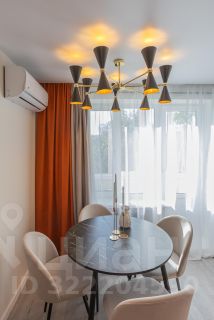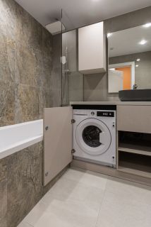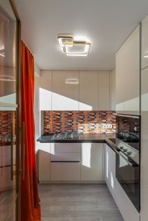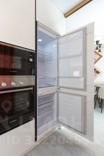 Квартира полностью укомплектована. Гостиная оборудована раскладным диваном с полноценным спальным местом (160х200 см) и телевизором LG 55 дюймов. Стильная кухня от известного производителя укомплектована встроенной техникой Bosch (варочная панель, духовка, СВЧ, вытяжка, посудомойка). В ванной комнате установлена встроенная стиральная машина Hyundai. Современное трековое и линейное освещение создает идеальную атмосферу в любое время суток.