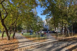 Дом находится в тихом дворе, прошедшем полную реконструкцию (новые площадки, озеленение). Из окон — приятный вид на зелень и современный ЖК Соколиный форт.