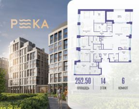 Продается просторная квартира площадью 252.50 м2 в жилом комплексе РЕКА. Квартира находится в 1 секции корпуса 3 (будет введен в эксплуатацию в 4 кв. 2026). Этаж 14-й из 16.