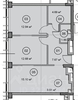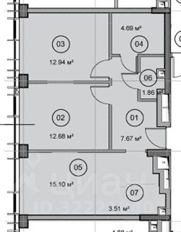 - Две изолированные комнаты — 12,68кв.м и 12,94 кв.м