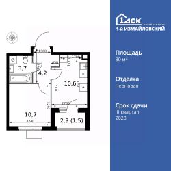 Продаётся 1-к квартира номер 54 общей площадью 30.7 кв.м. на 9-м этаже 24 этажного дома. Отделка Whitebox. Цена с учётом скидки!