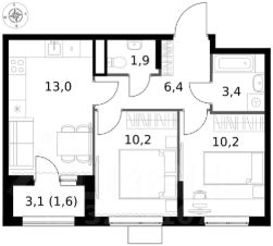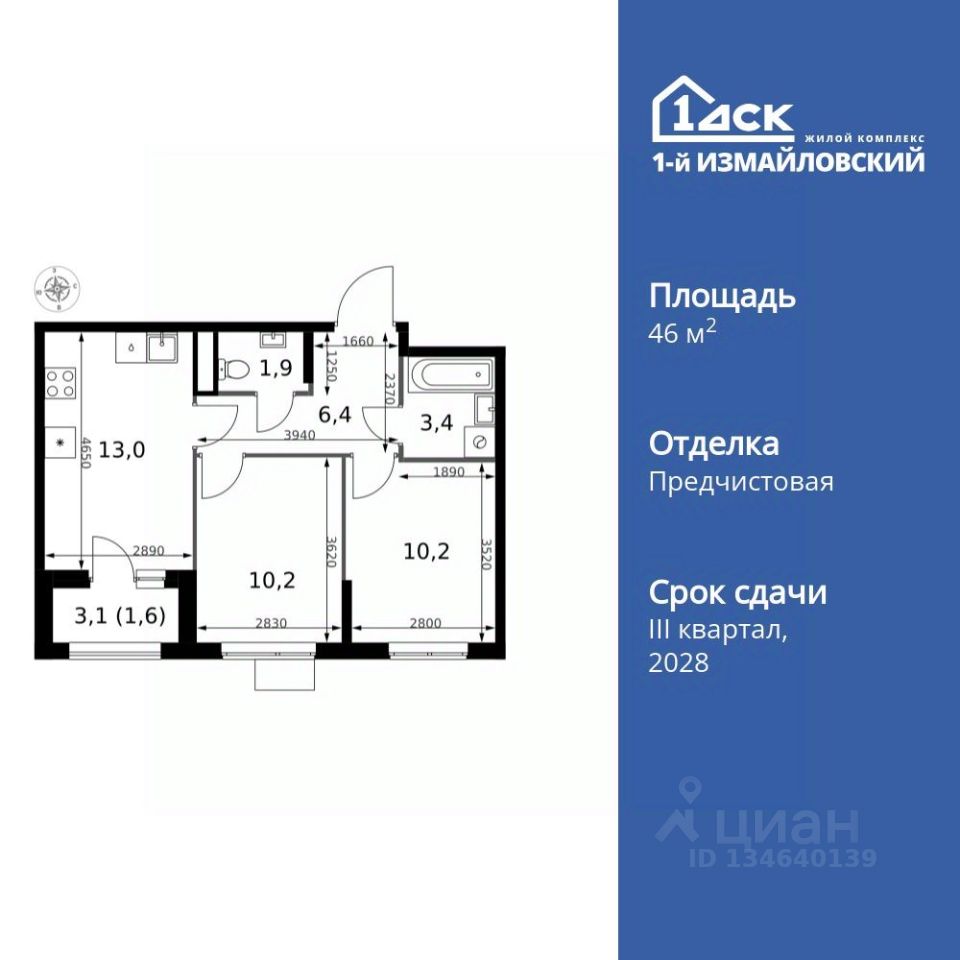 Продаётся 2-к квартира номер 252 общей площадью 46.7 кв.м. на 13-м этаже 25 этажного здания. Отделка Whitebox. Цена с учётом скидки.