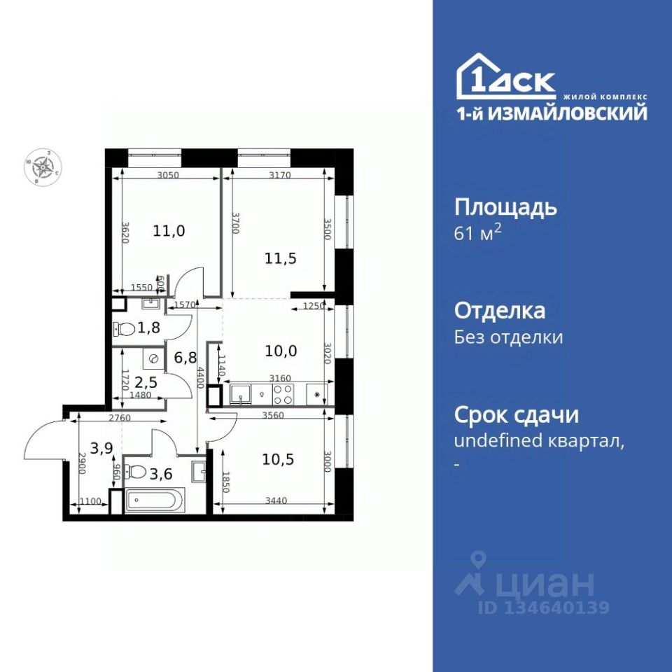 Продаётся 3-к квартира номер 674 общей площадью 61.6 кв.м. на 18-м этаже 32 этажного дома. Без отделки.