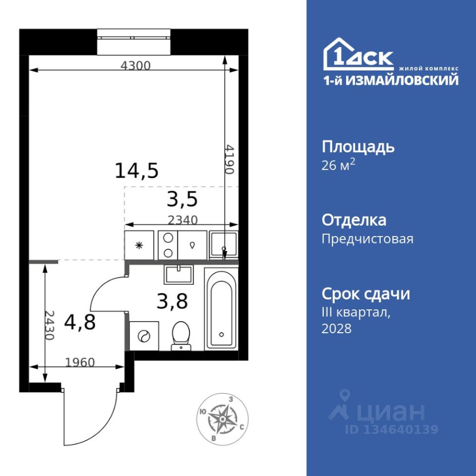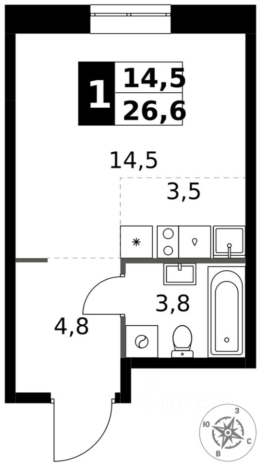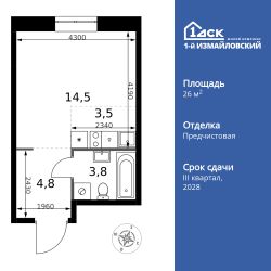 Продаётся квартира-студия номер 715 общей площадью 26.6 кв.м. на 21-м этаже 32 этажного здания. Отделка Whitebox.