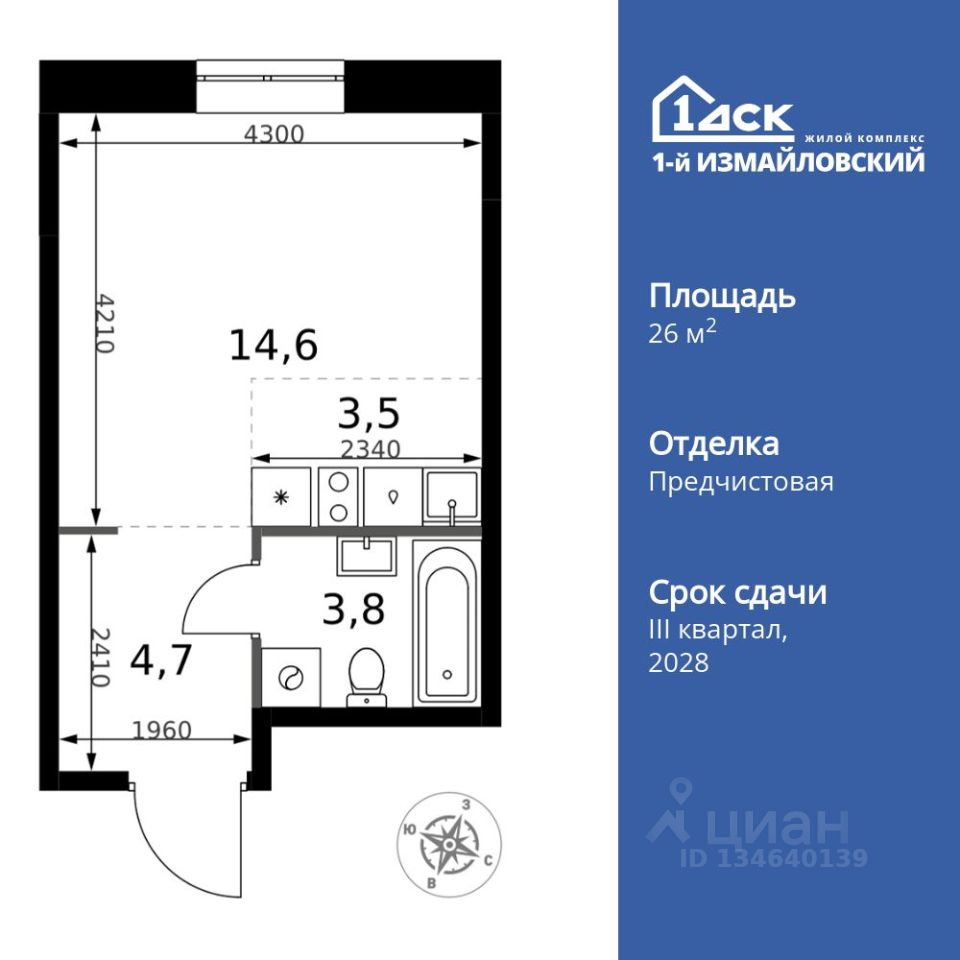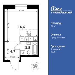 Продаётся квартира-студия номер 702 общей площадью 26.6 кв.м. на 20-м этаже 32 этажного здания. Отделка Whitebox.
