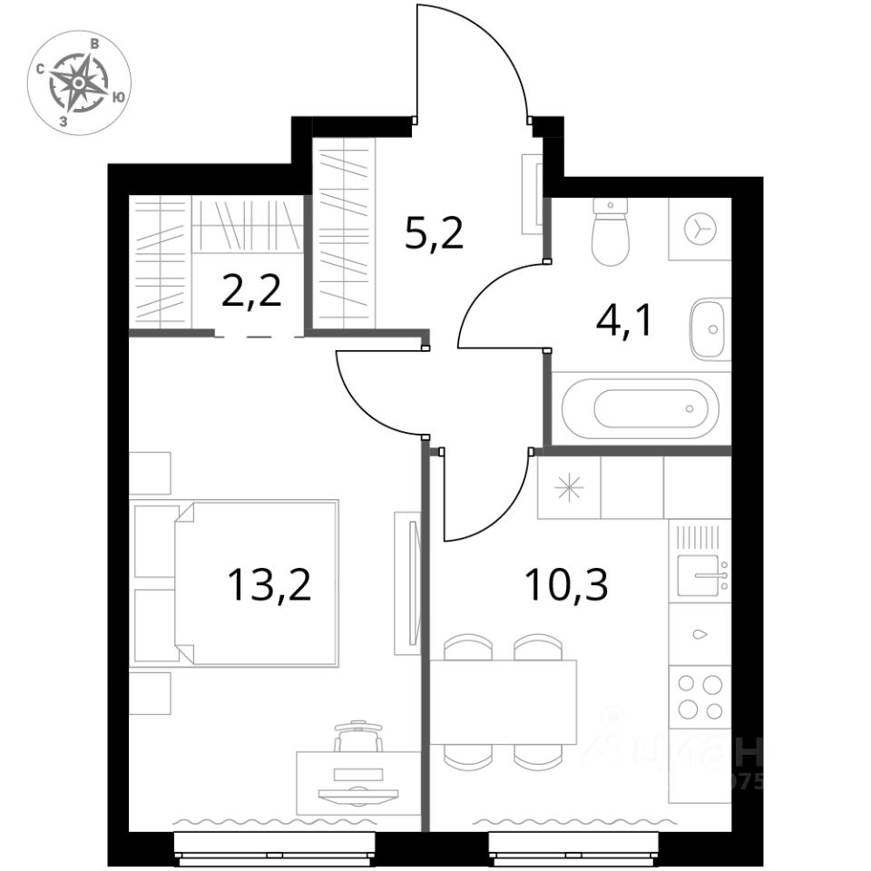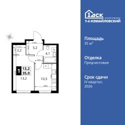 Продаётся 1-к квартира номер 382 общей площадью 35 кв.м. на 2-м этаже 23 этажного дома. Отделка Whitebox. Цена с учётом скидки!