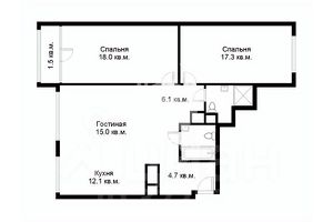 Квартира общей площадью 77.3 м2 имеет функциональное планировочное решение: зона кухни гостиной 27.1 м2, две изолированные спальни 18 и 17.3 м2, 2 сан.узла, зона для гардероба, просторная прихожая.