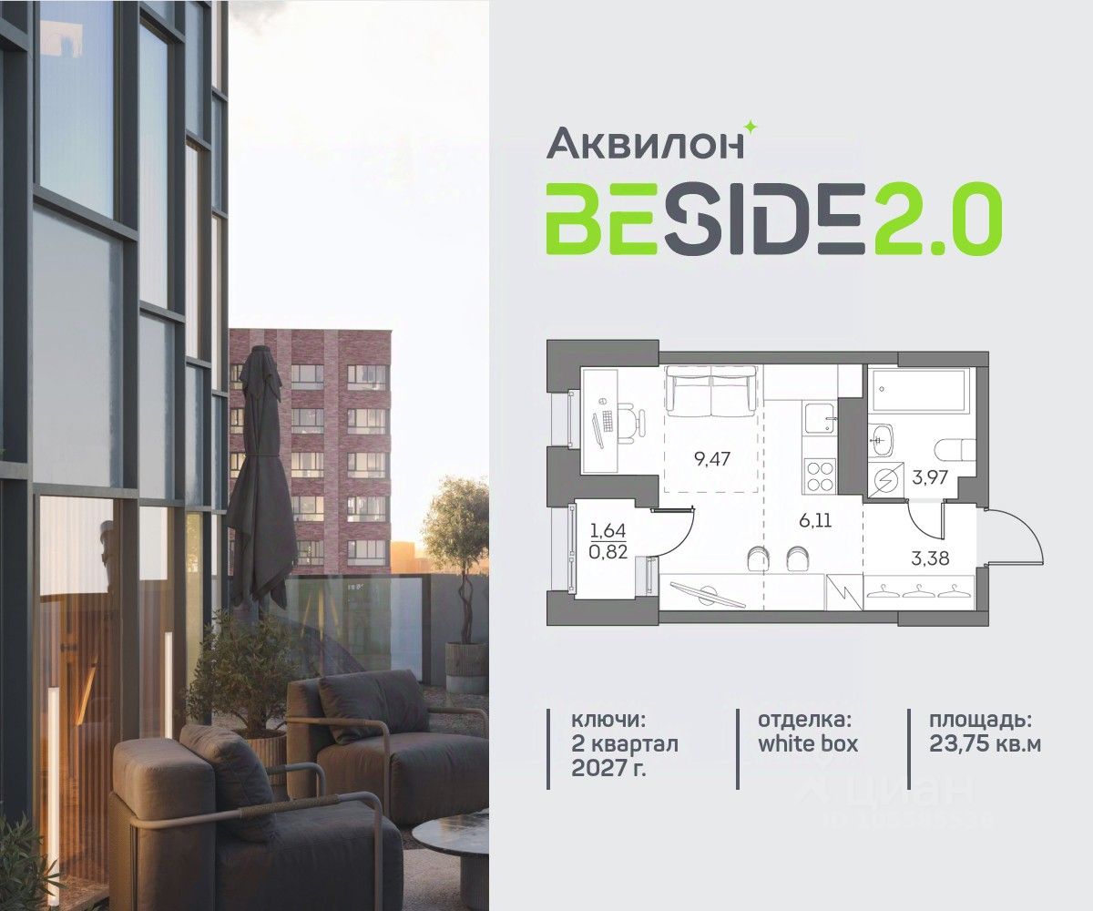 Лот из акционного пула. Цена указана с учетом применения скидки, подробности уточняйте у менеджеров в Офисах продаж. Продажа от застройщика. Продается просторная студия на 11 этаже современного жилого комплекса Beside 2.0. Вид из окон: на улицу. Срок сдачи: 2 кв. 2027 г. Квартира с лоджией. Отделка WhiteBox: - Вам не придется заниматься черновыми работами. - Возможность реализовать любой дизайн-проект. Расположение: В Beside 2.0 все необходимое - в шаговой доступности, не нужно тратить много времени на дорогу до работы, школы и поликлиники, походы в магазины и кинотеатры. Квартал расположен на пересечении ключевых транспортных магистралей Москвы, что позволяет быстро и легко добраться до любой нужной локации. Выбирайте наиболее подходящее занятие или попробуйте все! - Спортивные центры - Ретейл на первых этажах - Событийная площадь с амфитеатром - Дворовые площадки для активностей Транспортная доступность: - 5 минут на машине до ТТК - 7 минут на машине до Садового кольца - 7 минут пешком до станции "Нижегородская Внутренняя инфраструктура Beside 2.0: - Своя школа на 825 учеников - Просторное и светлое гранд-лобби - Коворкинг на открытом воздухе - Детский клуб Akvilon Kids - Подземный паркинг - Колясочные и велосипедные - Сити-боксы для хранения - Профессиональная управляющая компания Преимущества: - Технология энергоэффективности Termo-S, снижающая теплопотерю домов и позволяющую экономить на электроснабжении - Soundstop - технология дополнительной шумоизоляции на 39 дБ в квартирах с WhiteBox и чистовой отделкой - Система умного дома inHome 3.0 позволит контролировать коммунальные расходы, оплачивать счета и пользоваться услугами, не выходя из умного дома - Vent-In - система циркуляции воздуха в каждой комнате