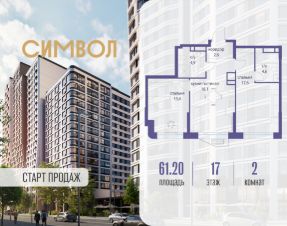 Продается 2-комнатная квартира от застройщика: общая площадь 61.20 м², жилая 31.00 м², кухня 18.10 м², 17-й этаж, жилой квартал "Гордость", корпус 36 (секция 3). Срок сдачи: 2 квартал 2029 года.