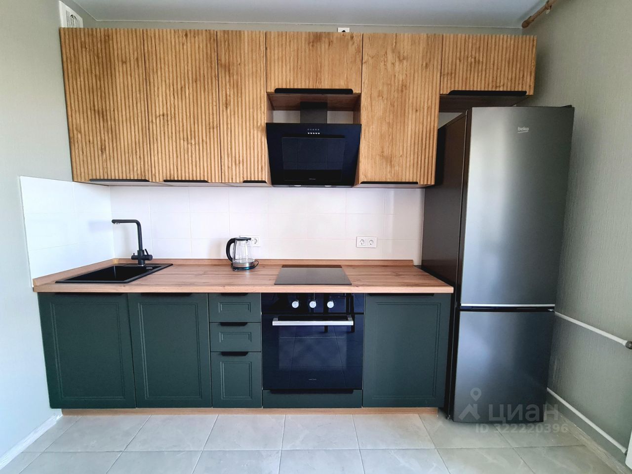 В квартире выполнен качественный ремонт. На кухне установлена современная мебель и вся необходимая бытовая техника, включая холодильник и посудомоечную машину.