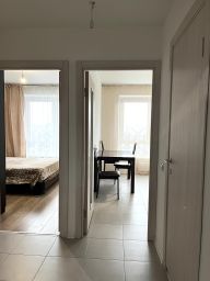 Общая площадь квартиры составляет 50 кв. м, жилая - 31 кв. м,(17 +12 кв.м) кухня - 12 кв. м. Квартира находится на 16 этаже 25-этажного панельного дома, построенного в 2021 году.