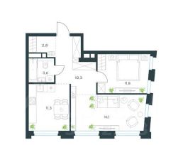 Общая площадь 56 кв.м,