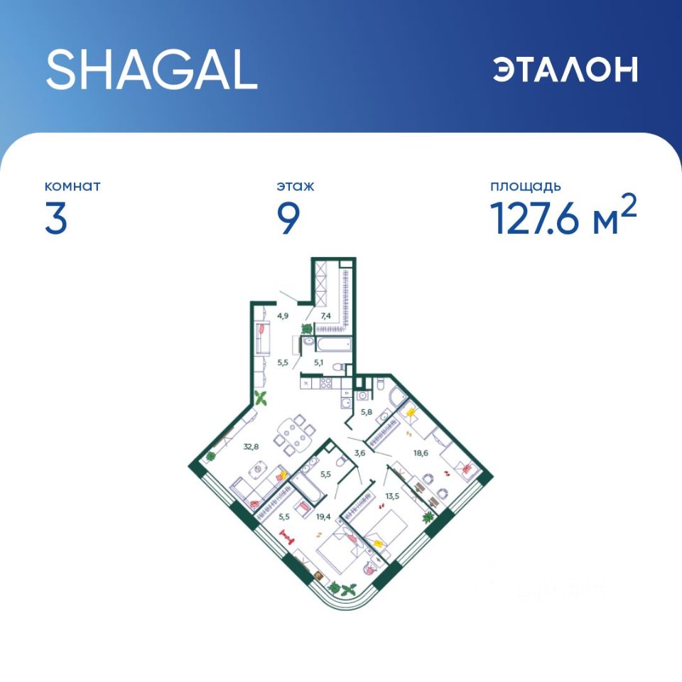 127,6 м²