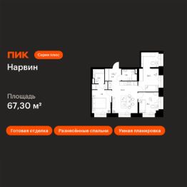 Новостройка! Продается 3-комн. кв-ра площадью 67,3 кв.м, (Корпус 1.2, Секция 2) 19 этаж 19-этажного дома в Нарвин от ПИК. Новый проект ПИК Серии плюс "Нарвин" возводится в Головинском районе Москвы.