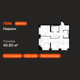 Новостройка! Продается 2-комн. кв-ра площадью 49,8 кв.м, (Корпус 1.2, Секция 2) 2 этаж 19-этажного дома в Нарвин от ПИК. Новый проект ПИК Серии плюс "Нарвин" возводится в Головинском районе Москвы.