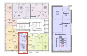 Квартира без отделки расположена на 21 этаже, секция 1, вид во двор