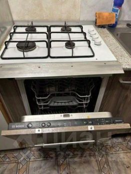 В комнате большой шкаф-стенка, на кухне - техника (стиральная машинка, посудомойка, холодильник)