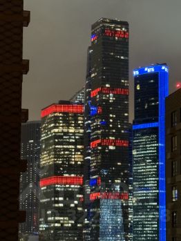 Вид на воду через двор. Отличный ночной вид на Москва-Сити.