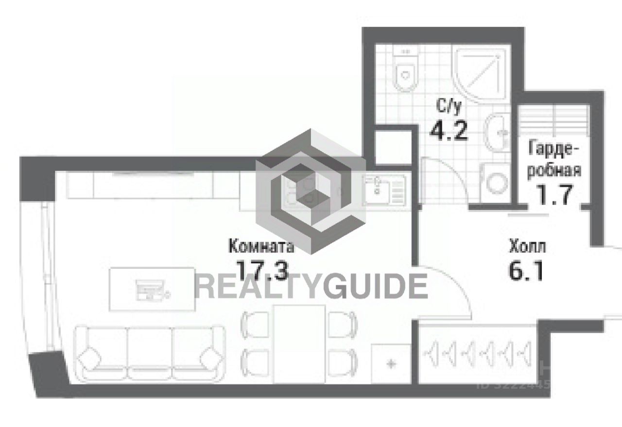 Площадь: 29,3 м2