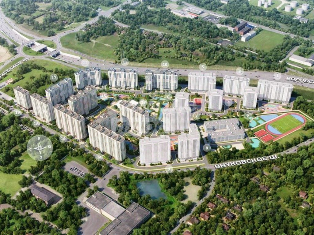 ЖК "Новое Внуково" - это жилой комплекс в Новой Москве, у подножия берега реки Незнайка. Поблизости - живописные места для прогулок: народный парк "Ручеек", усадьба Старо-Никольское, Валуевский и Ульяновский лесопарки. Часть домов сдана и внутри района уже открыт детсад с бассейном, а в ближайшее время откроются еще 3 детсада, 2 школы и поликлиника. На территории проекта будет построен первый в России Центр Российской Федерации Баскетбола, где будут площадки с трибунами, тренажерный зал, кафе и конференц-зал. Дворы-парки закрыты от машин и посторонних. На территории - прогулочный маршрут вдоль реки Незнайка и набережная с шезлонгами и качелями для отдыха. Также здесь появится плейхаб "Незнайка на Луне", площадь для мероприятий с сухим фонтаном, летним кинотеатром и кафе. В жилом комплексе - монолитные дома высотой от 6 до 14 этажей. Фасады облицованы кирпичом природных оттенков. На первом этаже оборудованное помещение для колясок, велосипедов и т.д.