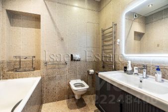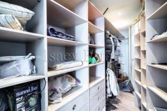 О КВАРТИРЕ: хороший ремонт, встроенная техника остаётся новым собственникам (остальное обсуждается), совмещённый санузел и гостевой туалет, есть гардеробная с полками. На полу плитка и ламинат. Кухня оборудована электрической плитой, духовым шкафом, холодильник, много мест для хранения. Также есть балкон.