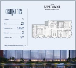 Река. Парк. Сити. Готовый дом в идеальном месте. Продается 3-комнатная квартира на 23 этаже с панорамным остеклением и видом на Береговой пр-д.