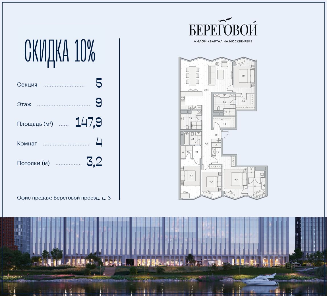 Река. Парк. Сити. Готовый дом в идеальном месте. Продается 4-комнатная квартира на 9 этаже с панорамным остеклением и видом на Береговой пр-д.