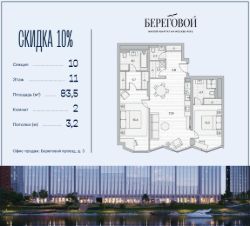 Река. Парк. Сити. Готовый дом в идеальном месте. Продается 2-комнатная квартира на 11 этаже с панорамным остеклением и видом на Береговой пр-д.