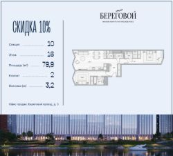 Река. Парк. Сити. Готовый дом в идеальном месте. Продается 2-комнатная квартира на 16 этаже с панорамным остеклением и видом на Береговой пр-д.