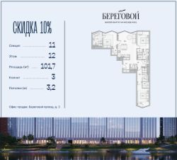 Река. Парк. Сити. Готовый дом в идеальном месте. Продается 3-комнатная квартира на 12 этаже с панорамным остеклением и видом на Береговой пр-д.