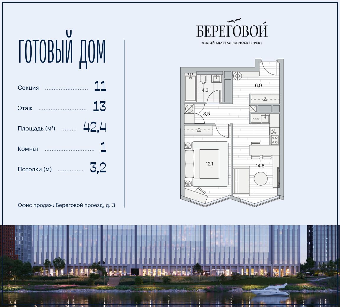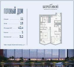 Река. Парк. Сити. Готовый дом в идеальном месте. Продается 1-комнатная квартира на 13 этаже с панорамным остеклением и видом на Береговой пр-д.