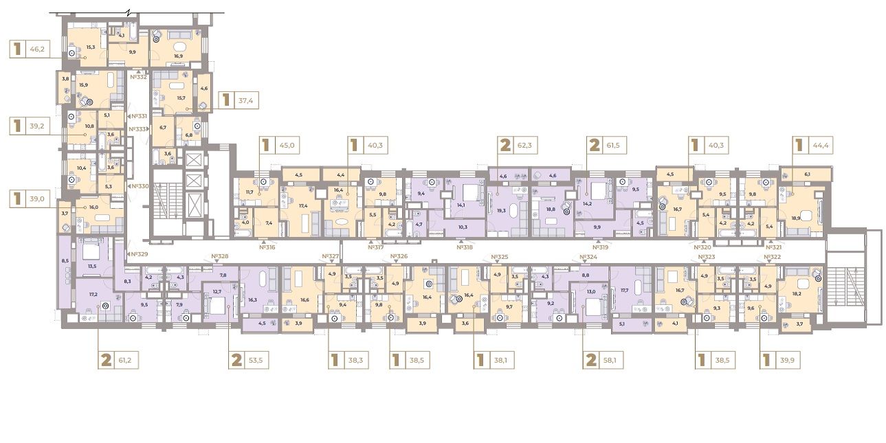 Жилая часть находится в восточной и западной части "Парка Легенд". Восточную занимает девять 24-этажных