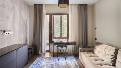 Выполнена премиальная дизайнерская отделка в стиле современной классики с использованием элементов ведущих мировых брендов, таких как Longhi, Castagna. Высокие потолки, идеальное зонирование, много естественного света. Из окон открывается вид на уютный скверик и в приватный внутренний двор.