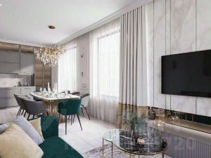 В квартире две комнаты и кухня- гостиная и один совмещенный санузел. Окна выходят на улицу, наполняя помещение естественным светом.