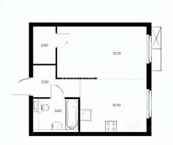 - Идеальная планировка: Очень удачное зонирование. Просторная кухня-гостиная 10.7 кв. м. — место для жизни и приема гостей. Удобный совмещенный санузел и главный бонус — встроенная гардеробная, которая избавляет от необходимости загромождать пространство шкафами.