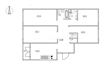 Продаётся 4-х комнатная квартира общей площадью 99,4 кв.м. на 11-м этаже 15 этажного дома. Квартира без мебели. Отделка White Box с санузлами "под ключ".