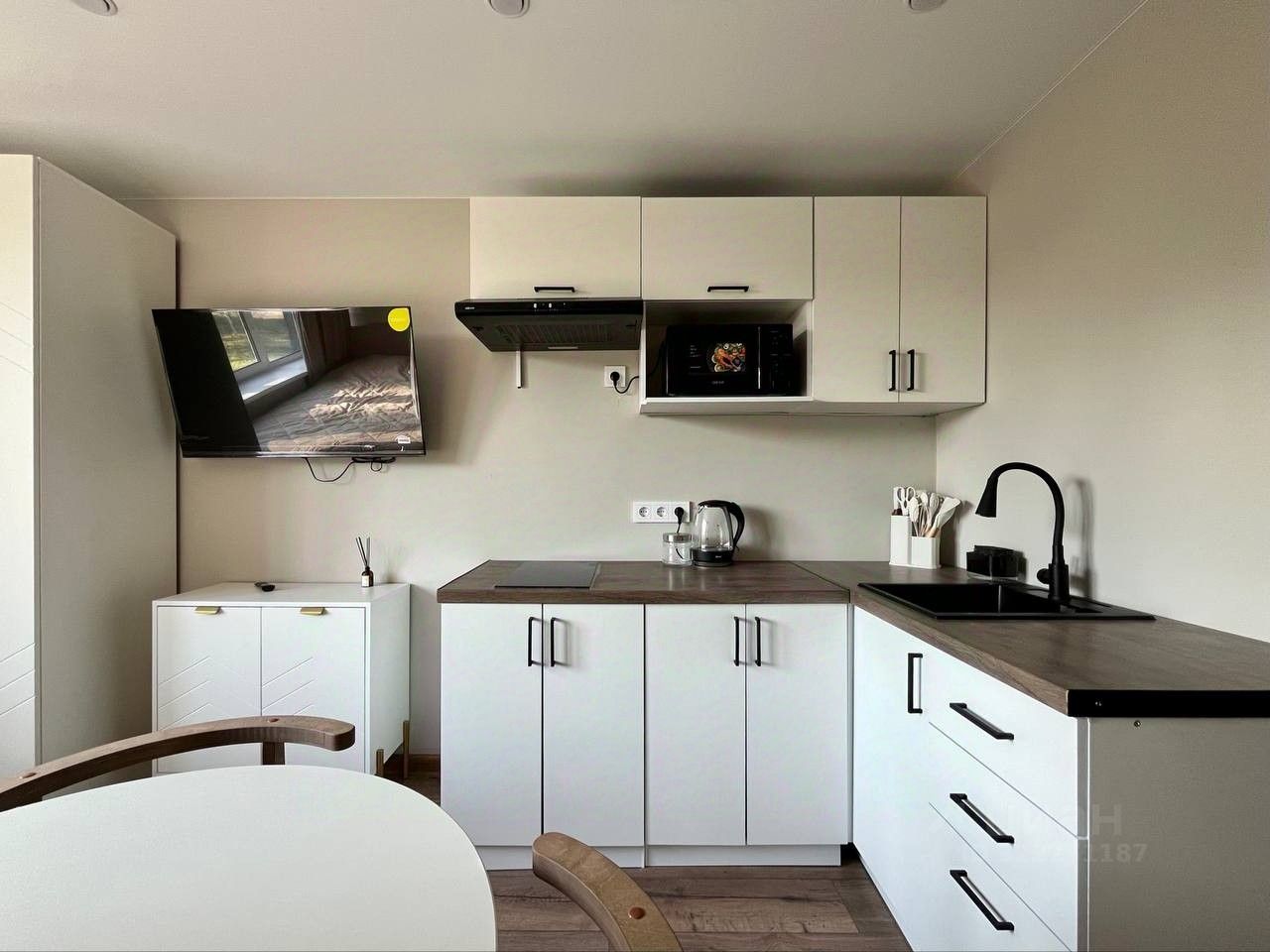 Апартамент-студия с отличным ремонтом, мебелью и техникой. Можно жить или сразу сдать.