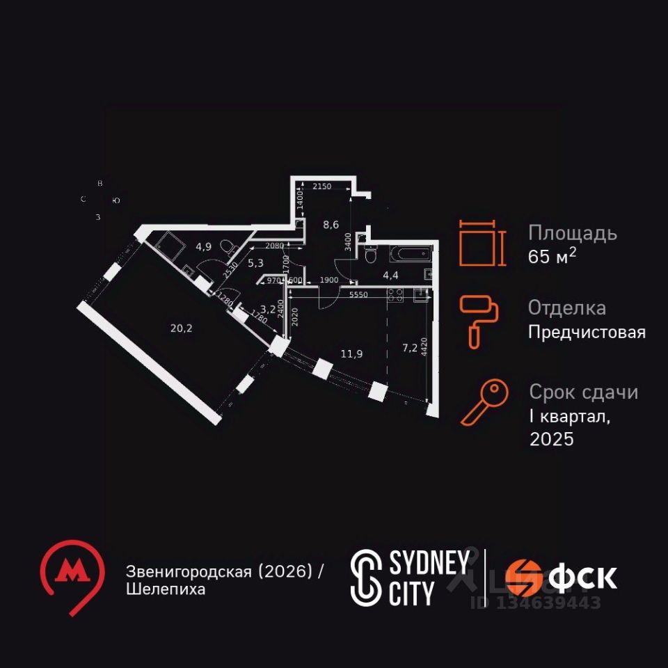 Продаётся 1-к квартира номер 396 общей площадью 65.6 кв.м. на 19-м этаже 44 этажного дома. Отделка Whitebox. Цена с учётом скидки!