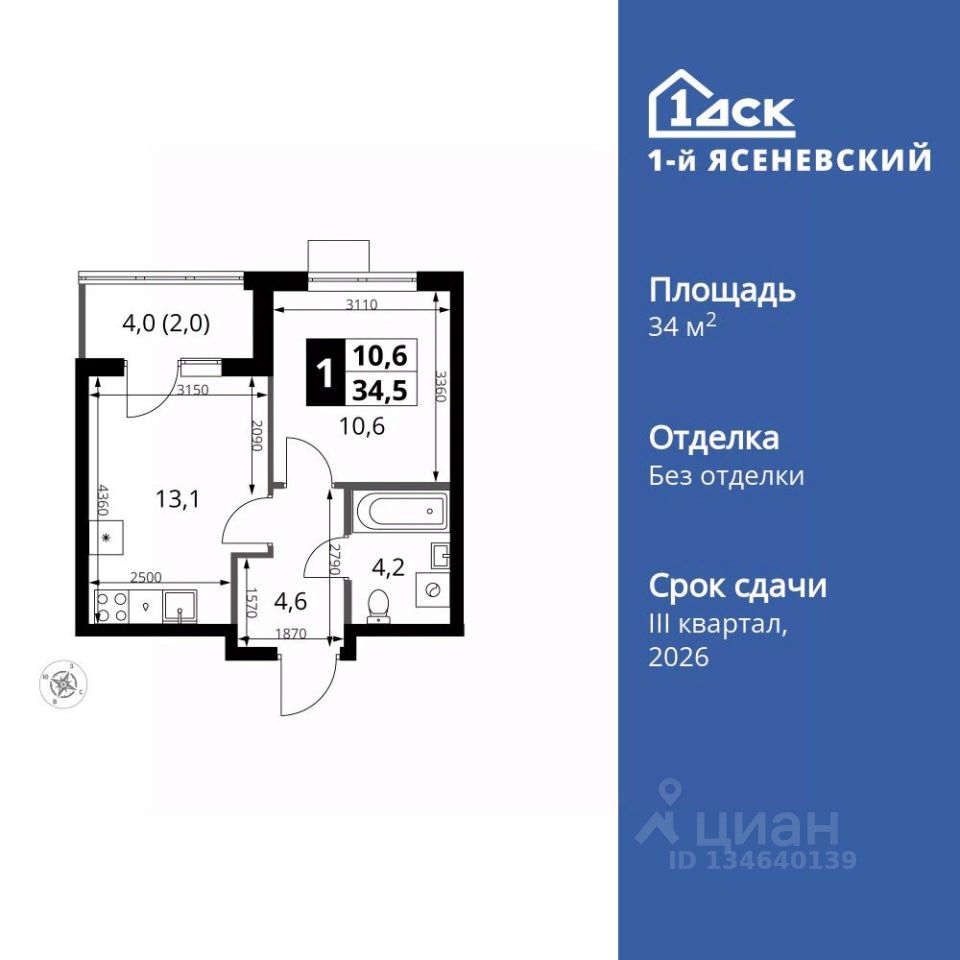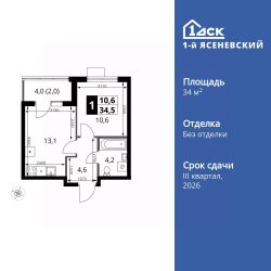 Продаётся 1-к квартира номер 204 общей площадью 34.5 кв.м. на 8-м этаже 18 этажного здания. Без отделки.