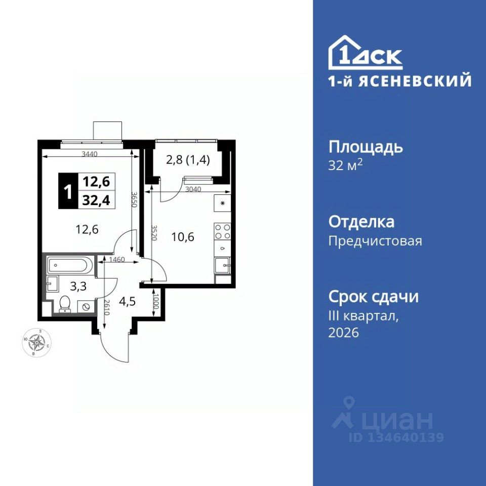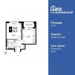 Продаётся 1-к квартира номер 335 общей площадью 32.4 кв.м. на 18-м этаже 18 этажного здания. Отделка Whitebox.
