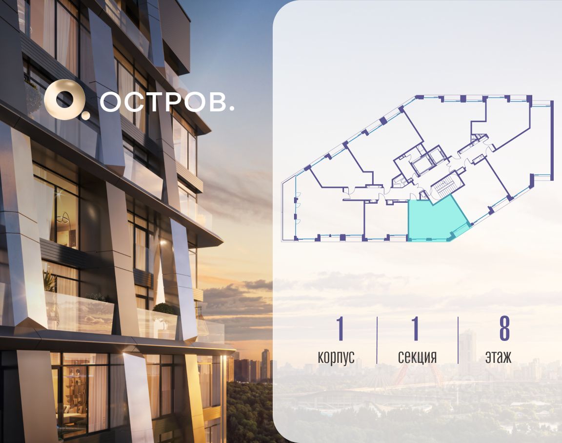 ОСТРОВ.12.1 - часть жилого комплекса на западе Москвы, в 15 минутах езды от центра. Это настоящий заповедник посреди большого города, в окружении реки и 650 га заповедников. Здесь все необходимое находится по соседству: от детского сада до супермаркета, от фитнес-зала до серфинг-центра. На территории созданы все условия для отдыха и общения: клубная инфраструктура в домах и дворы-парки, набережные и променады, маршруты для спортсменов, детей и возрастных жителей. В нескольких минутах ходьбы расположена станция метро "Мнёвники" БКЛ. На автомобиле - 10 минут до Москва-Сити и 15 минут до Садового кольца.