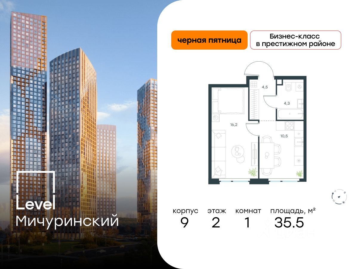 В жилом квартале, расположенном на границе с природным заказником "Долина реки Очаковки", продаётся 1-комнатная квартира площадью 35.50 кв.м без отделки. Квартира расположена на 2 этаже 12-этажного корпуса Корпус 9 в жилом комплексе бизнес-класса Level Мичуринский (компания Level Group/Левел групп).