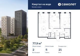 Предлагается 2-комнатная квартира бизнес-класса 77,93 кв.м в корпусе 5 на 21 этаже, в ЖК "Квартал на воде"